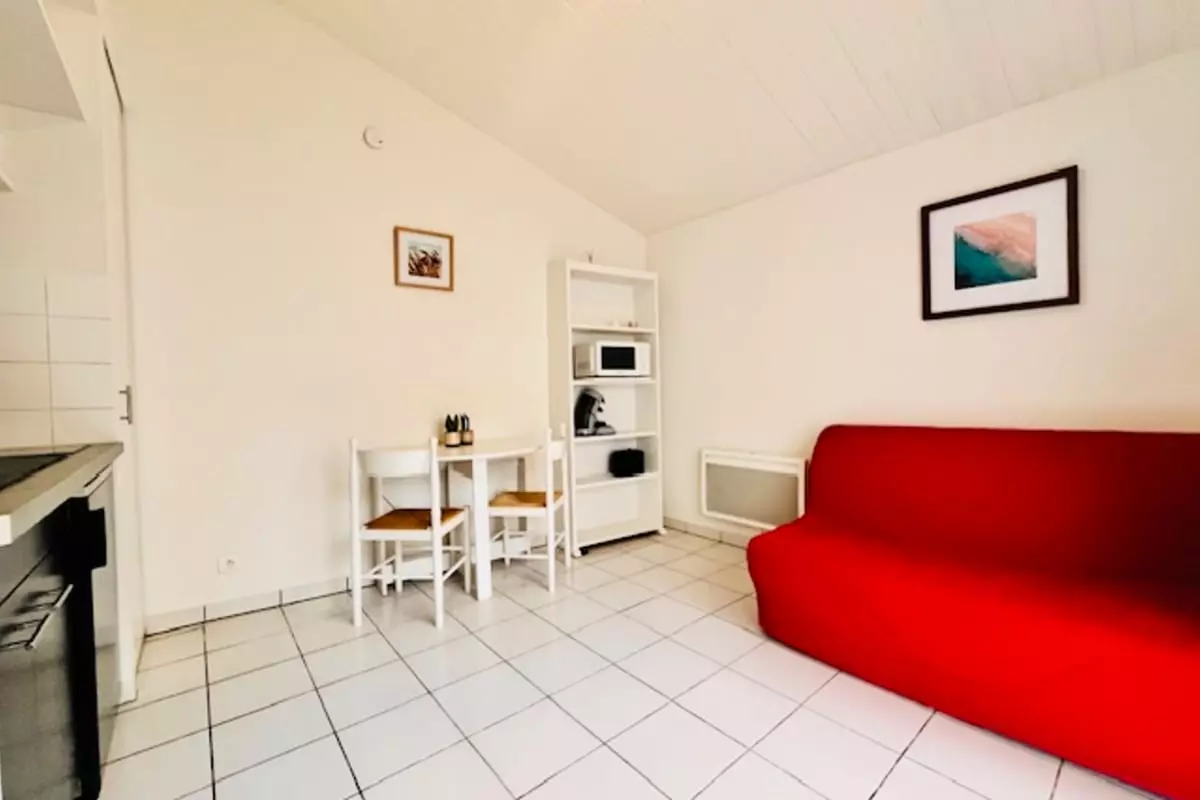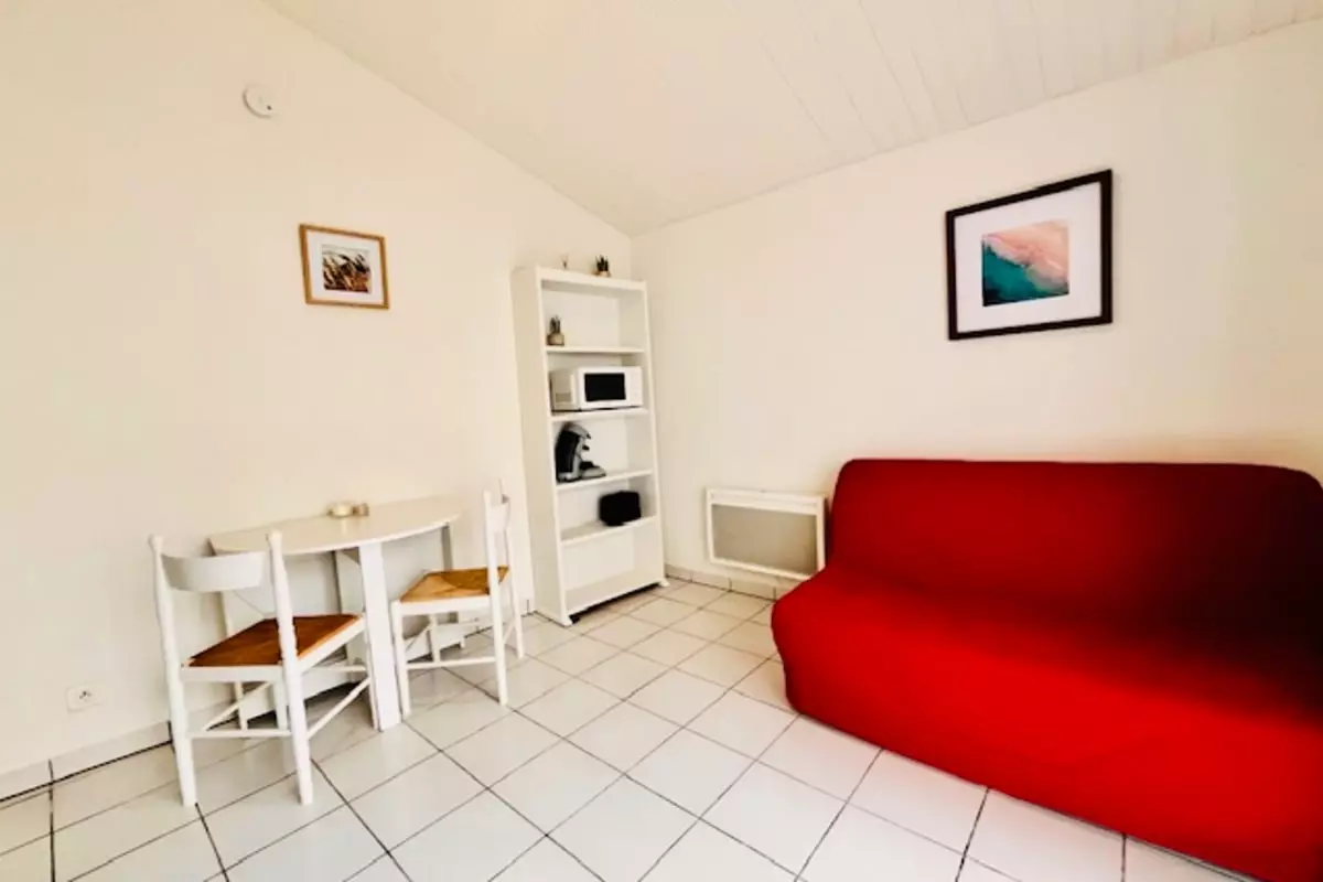 This apartment in La Rochelle offers a functional, relaxing, and perfectly designed stay for two travelers seeking comfort and convenience. With its cleverly laid-out 19m², it provides a true base from which to fully enjoy the city and its surroundings. Nestled on the ground floor of a residence, it welcomes you into a soothing atmosphere from the moment you arrive.