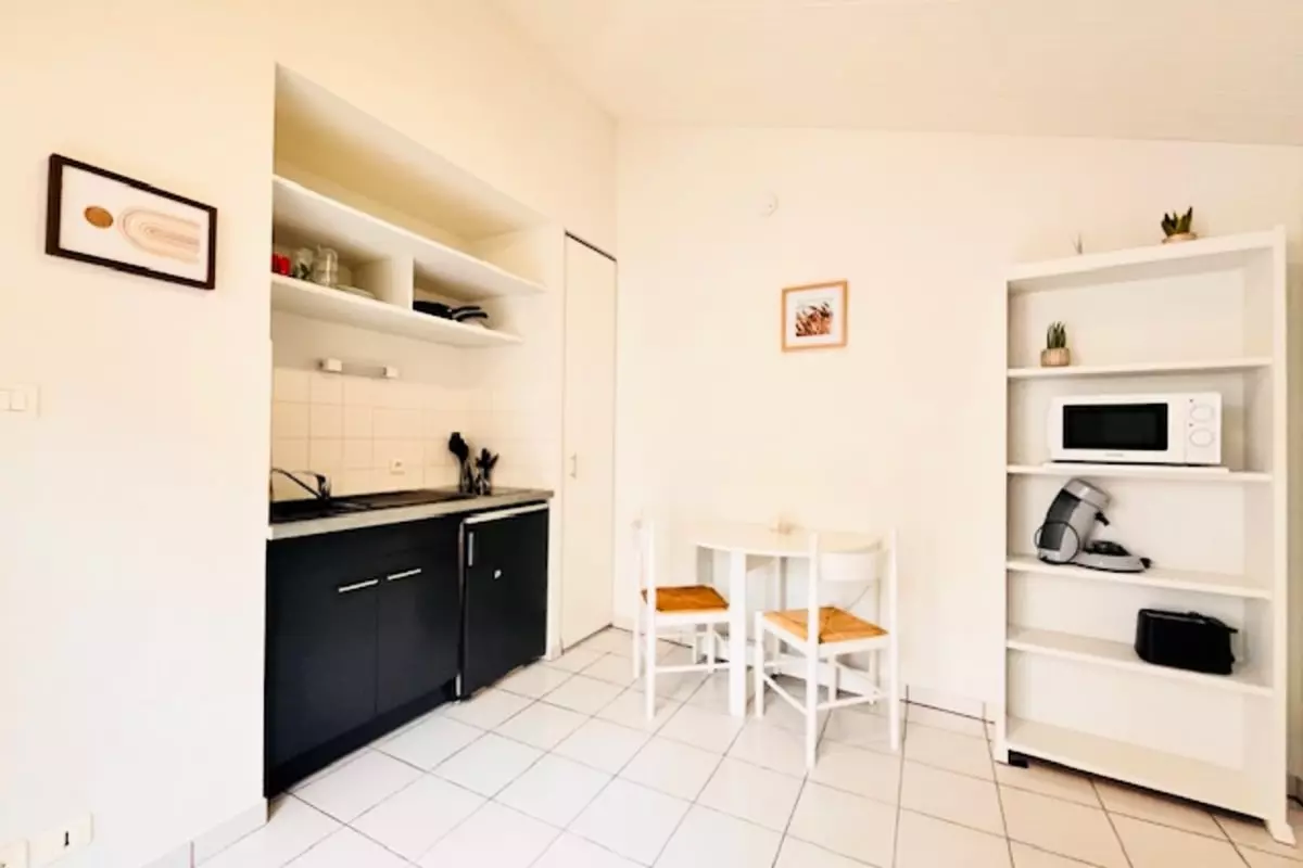 The fully equipped kitchenette allows you to prepare your meals independently: refrigerator, microwave, coffee maker… everything you need for comfortable living is provided. A modern shower room completes the setup and adds to the studio's practicality.