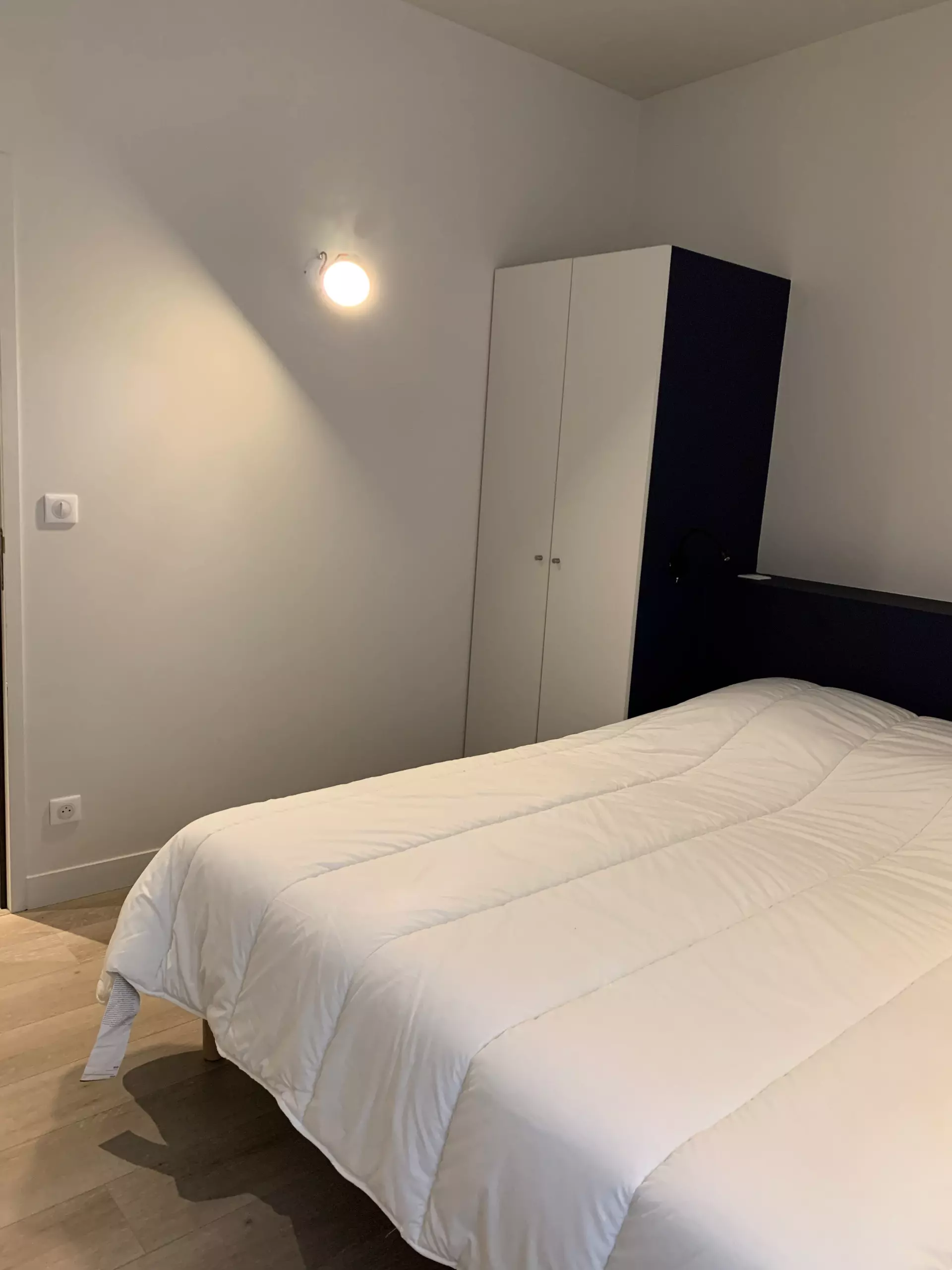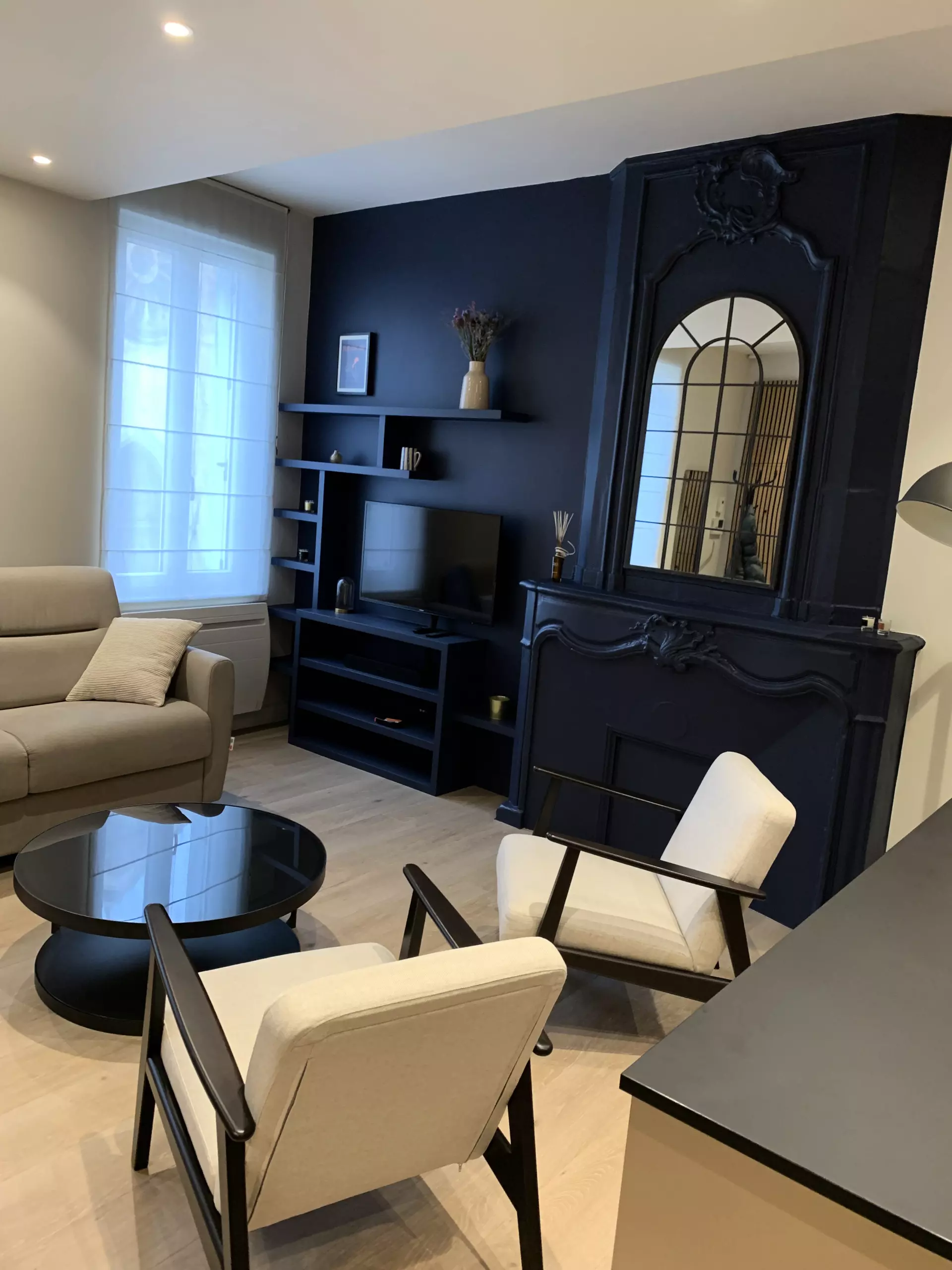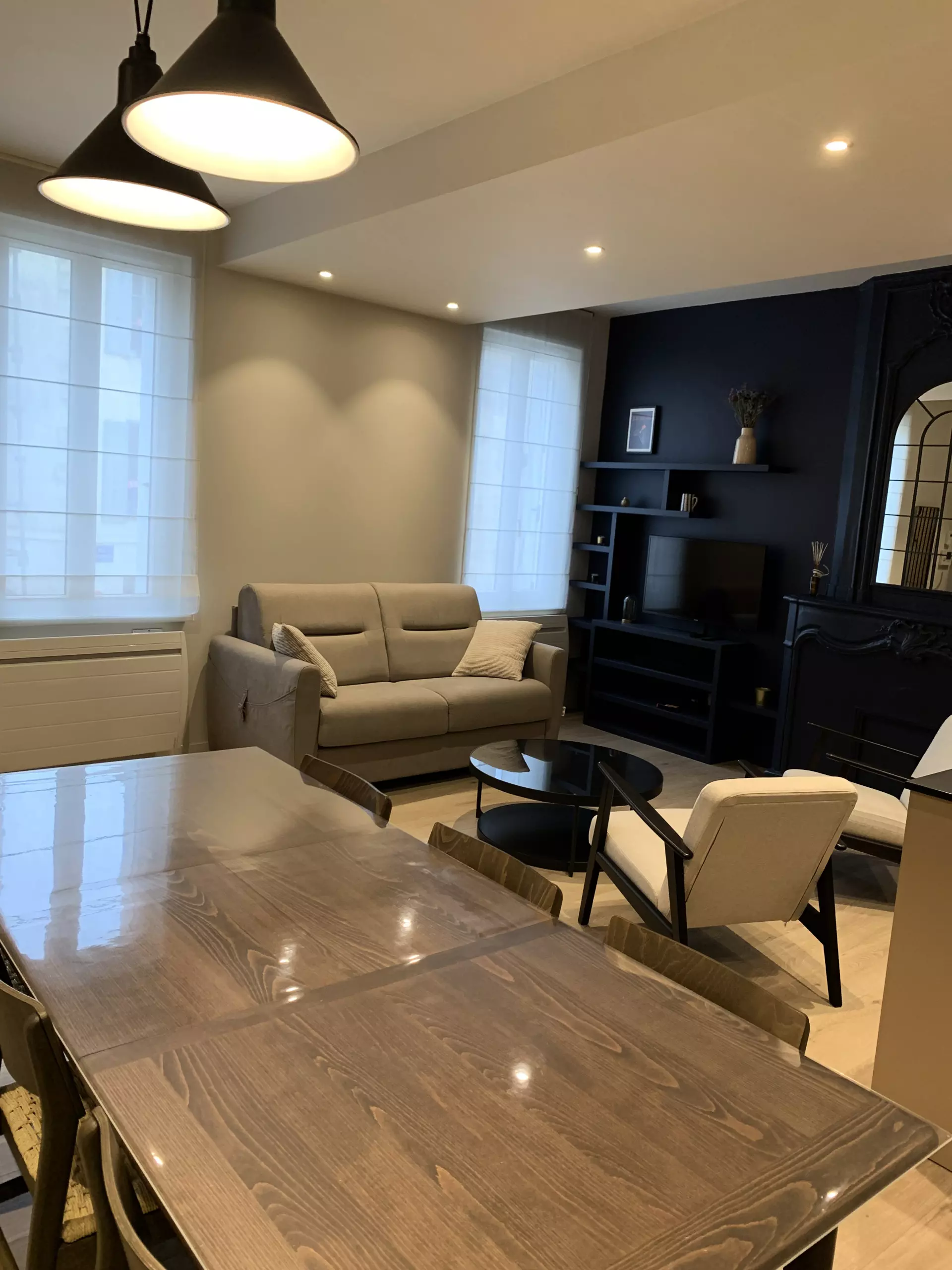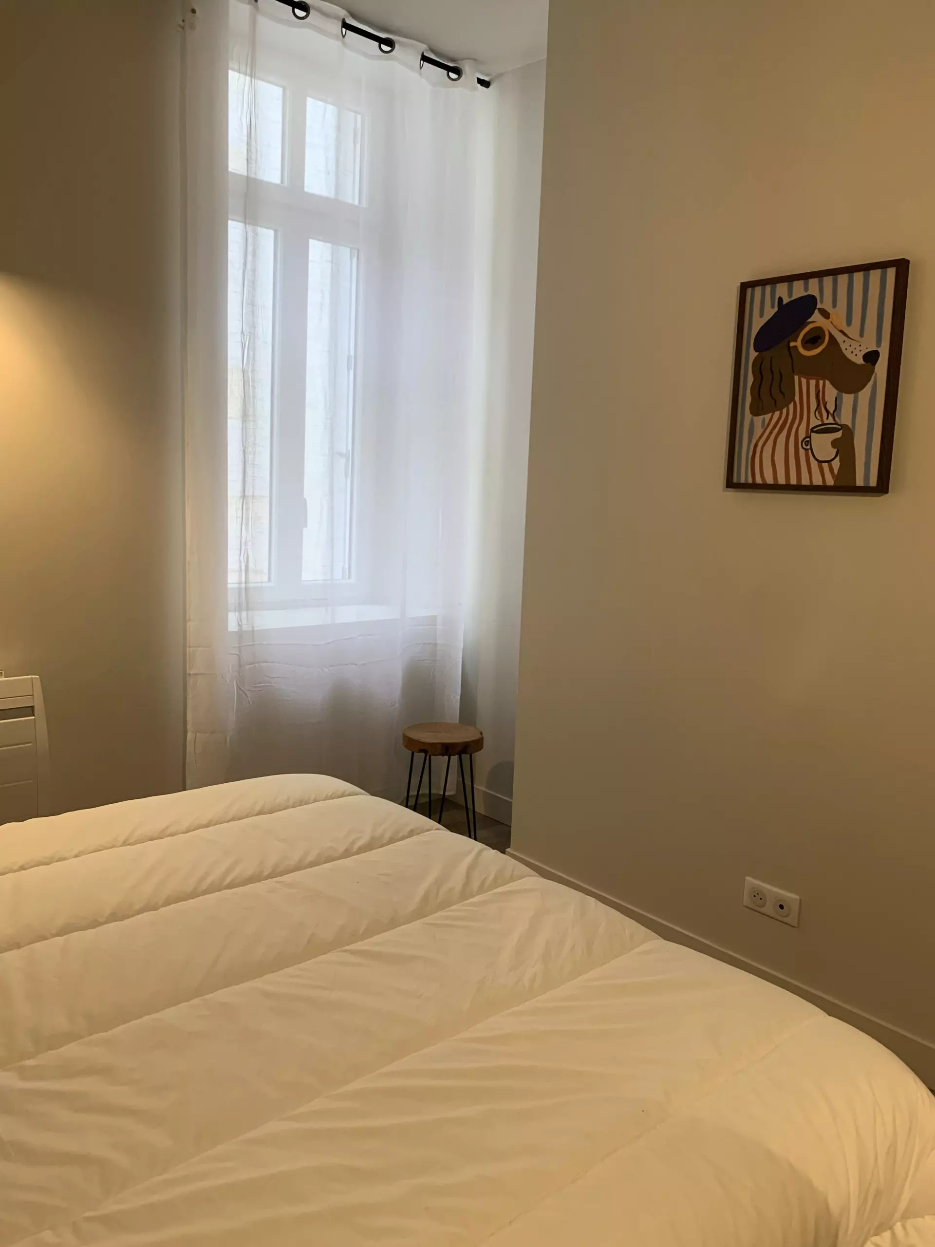In the heart of the city, near the market, in a private building with six apartments, a -floor apartment close to the Cacaud parking lot. It comprises a main room, a living/dining room, a fitted and equipped kitchen, two bedrooms with closets, a separate toilet, and a shower room.