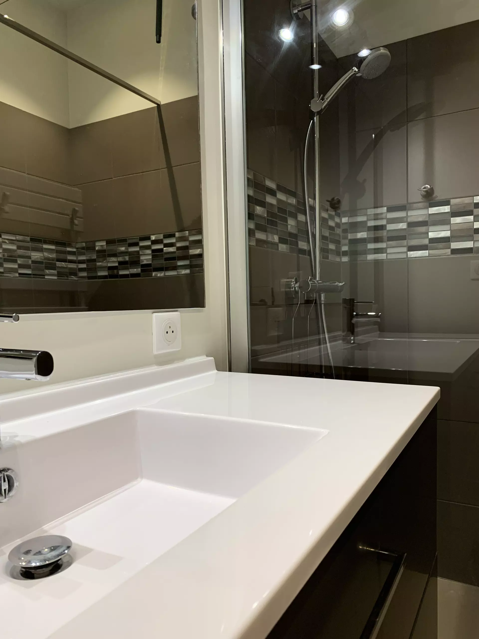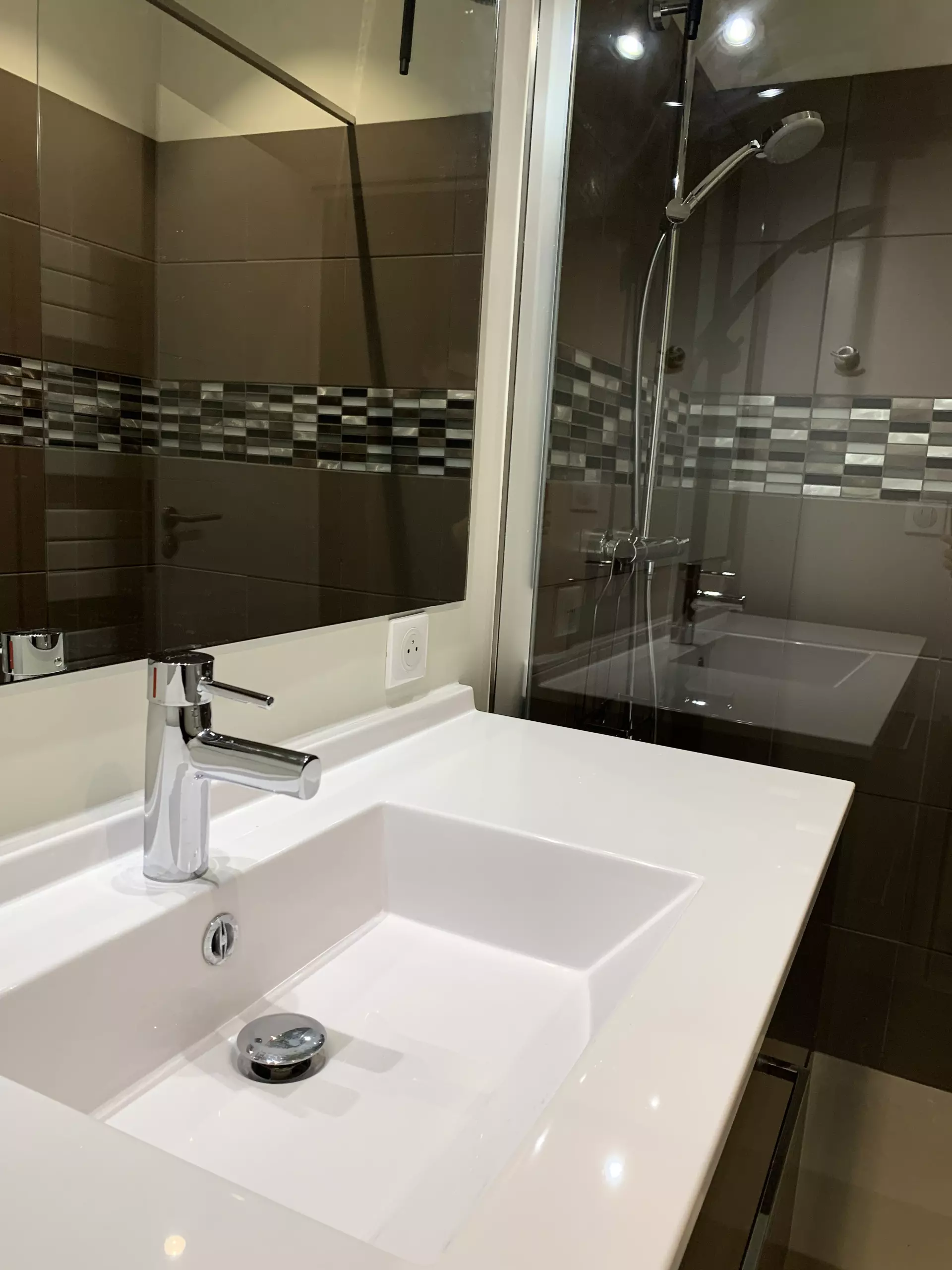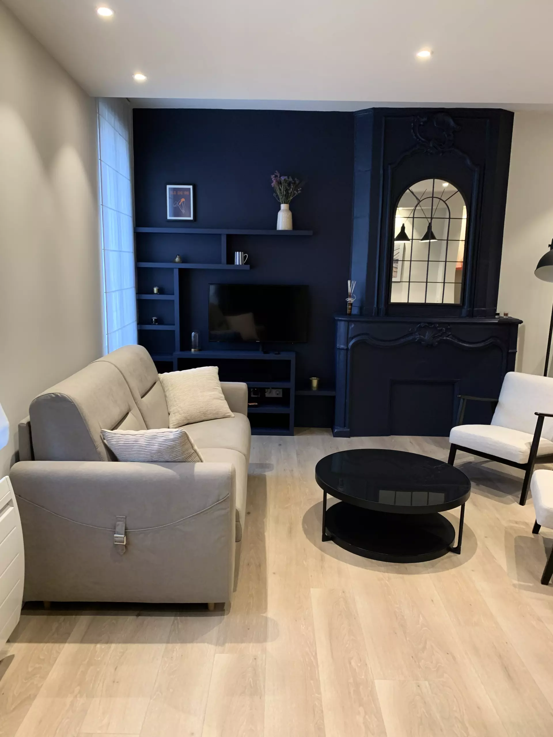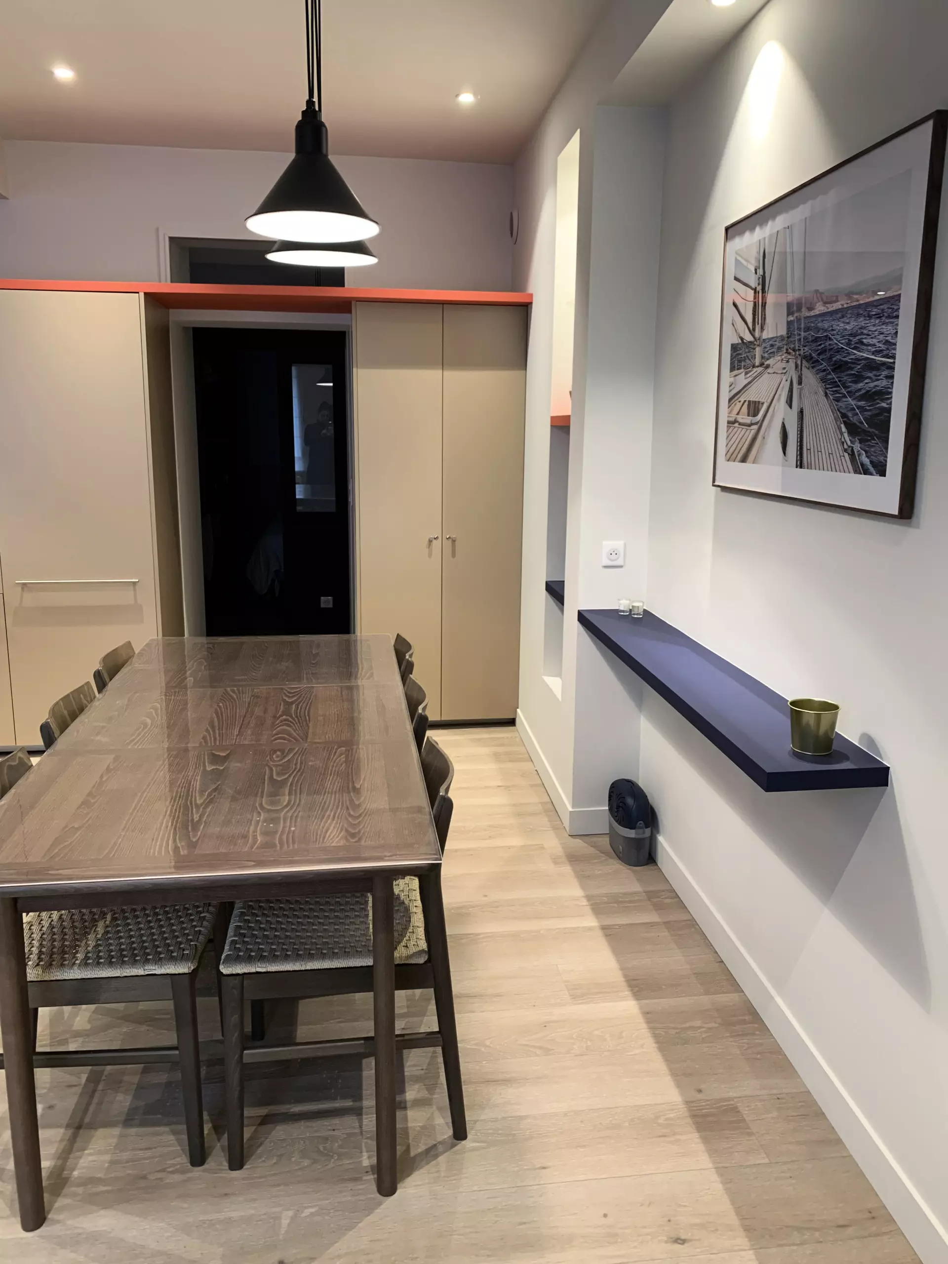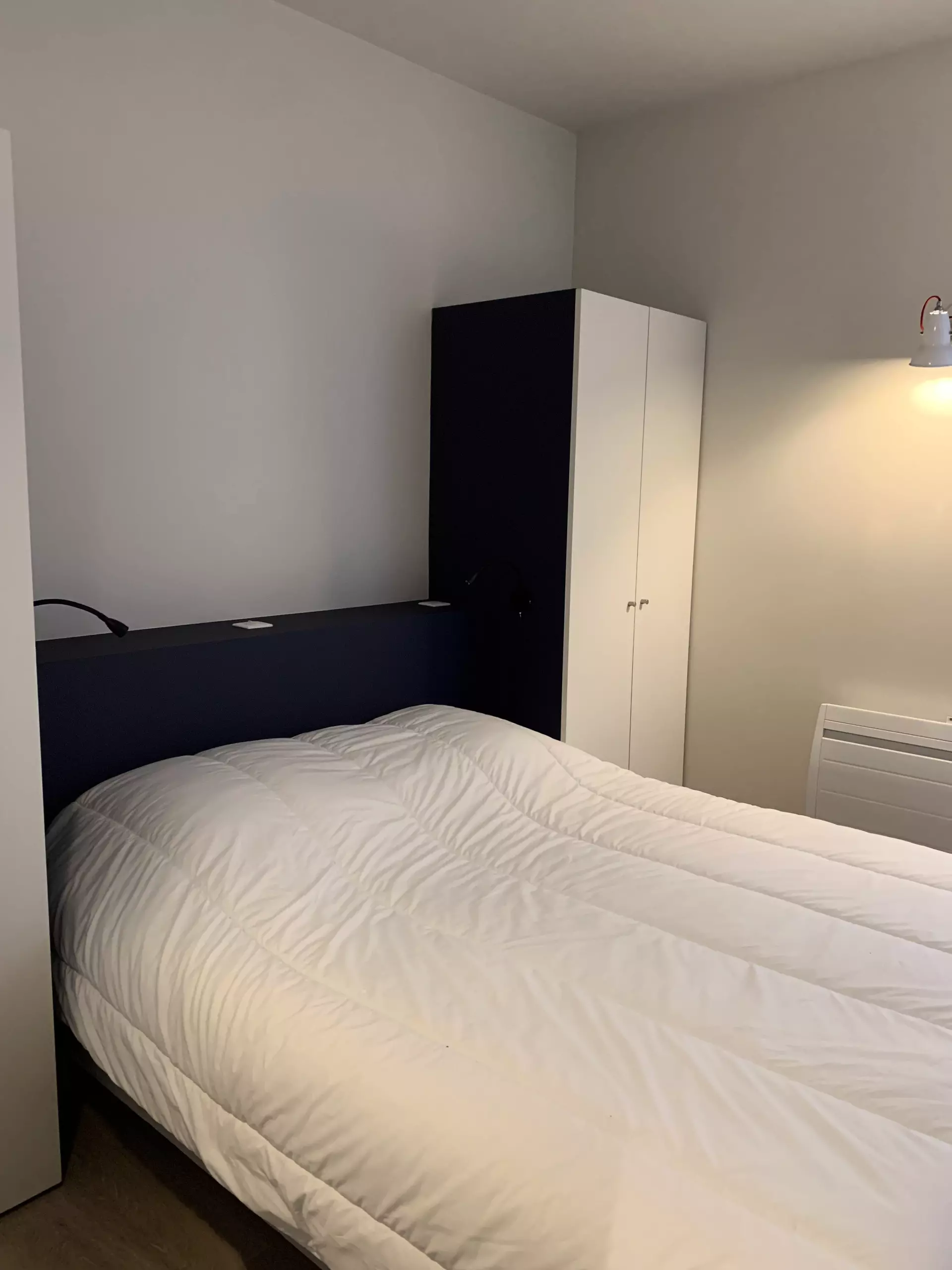 In the heart of the city, near the market, in a private building with six apartments, a -floor apartment close to the Cacaud parking lot. It comprises a main room, a living/dining room, a fitted and equipped kitchen, two bedrooms with closets, a separate toilet, and a shower room.