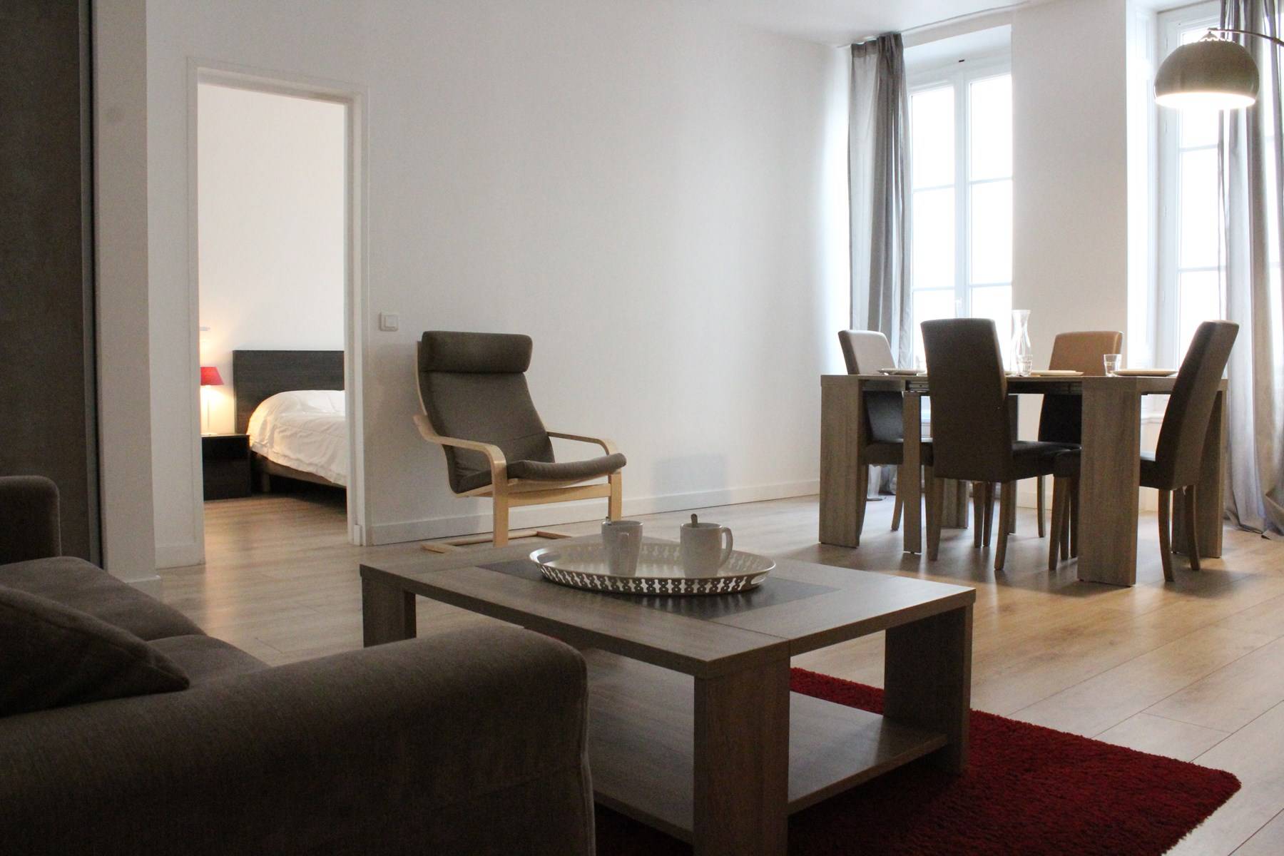 La Rochelle (17) - City center - 24 Quai Duperre 2-room apartment - approx. 60 m² - up to 4 people This holiday apartment will seduce you with its charm. Combining old and modern, thanks to its exposed stones and tasteful designer furniture. Ideally placed on the old port, you will be able to do everything on foot. On the second floor, it consists of a pleasant and warm entrance, a living room with a 2-seater sofa bed offering a TV area and a lounge/relaxation area, a fully equipped kitchen with oven, hob, dishwasher, a bedroom with a double bed, a bathroom with walk-in shower and towel dryer and a separate toilet. The advantages of this rental by the sea: Charm of the old renovated, in the heart of the city center, on the old port, possibility of doing everything on foot, tastefully furnished. Cleaning included. Delivery and return of keys exclusively in La Rochelle (Minimes district).