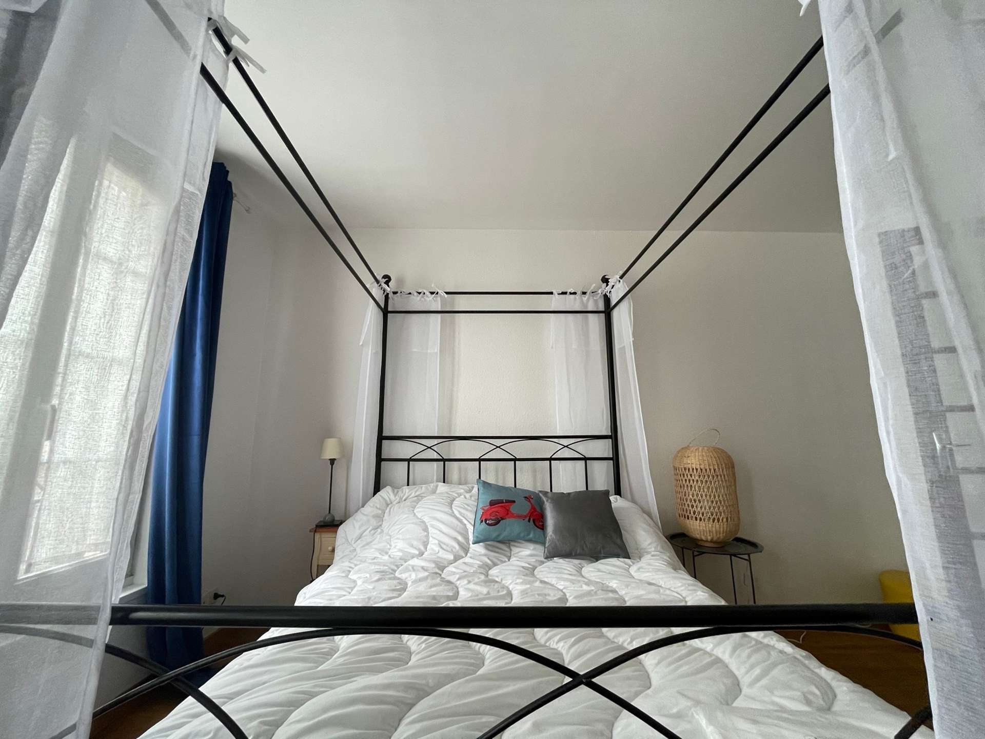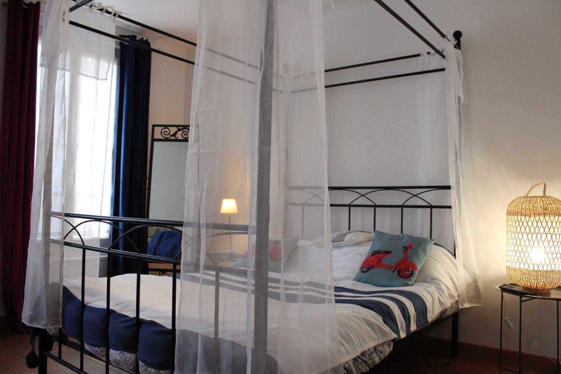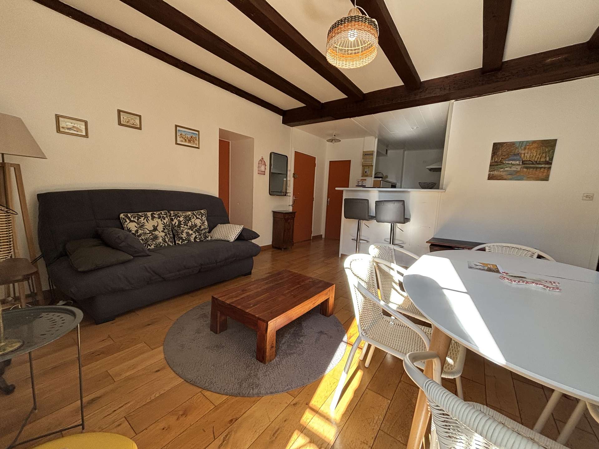 La Rochelle (17) - Downtown - 30 rue Bletterie 3-room apartment - approximately 60 m² - up to 6 people A luxury holiday apartment, with its colorful furniture, this apartment will seduce you and make your stay a pleasant one. ideal accommodation. A stone's throw from the old port of La Rochelle, its geographical location is ideal. It is on the second floor and consists of a living room with a 2-seater sofa bed, a fitted and equipped kitchen with oven, fridge, hob, a master bedroom with a 140 cm double bed and an adjoining shower room, a bedroom with two 90 cm beds with a water point in the cupboard, and a separate WC. The advantages of this rental by the sea: In the heart of the city center, a breathtaking view of the towers and the old port just at the end of your street, at the foot of the building bars and restaurants for festive moments, shops and boutiques a few meters away, market, and easy access to public transport. Cleaning with disinfection included.