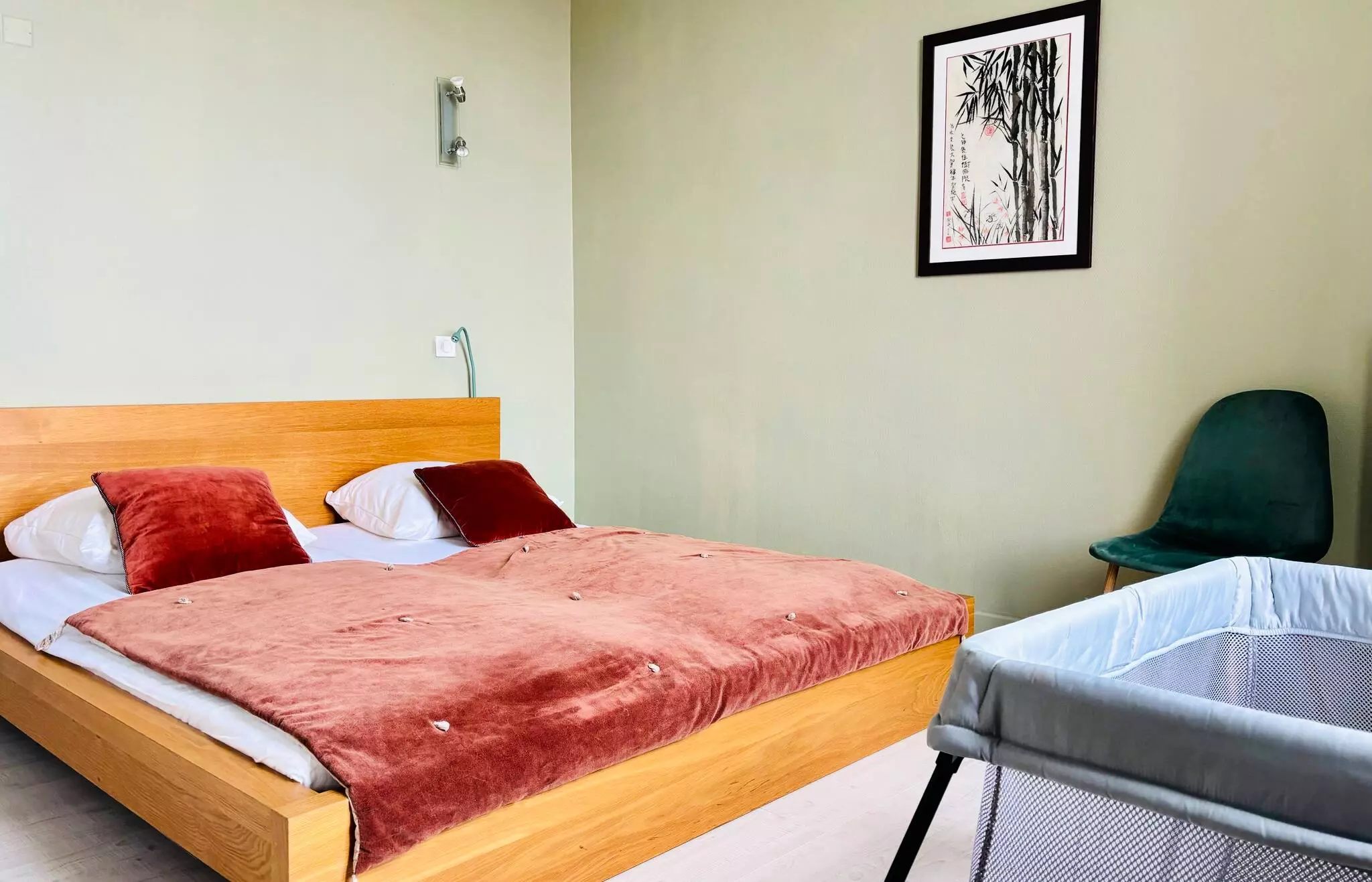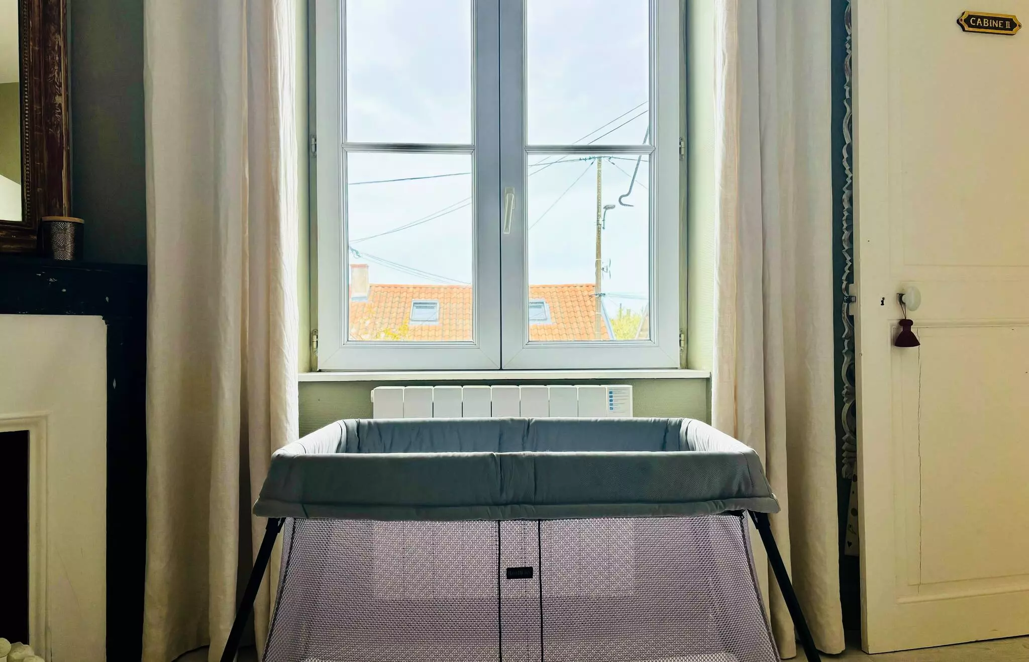 This family home is also equipped with several baby items: travel cot and mattress, wooden high chair and baby bath.
