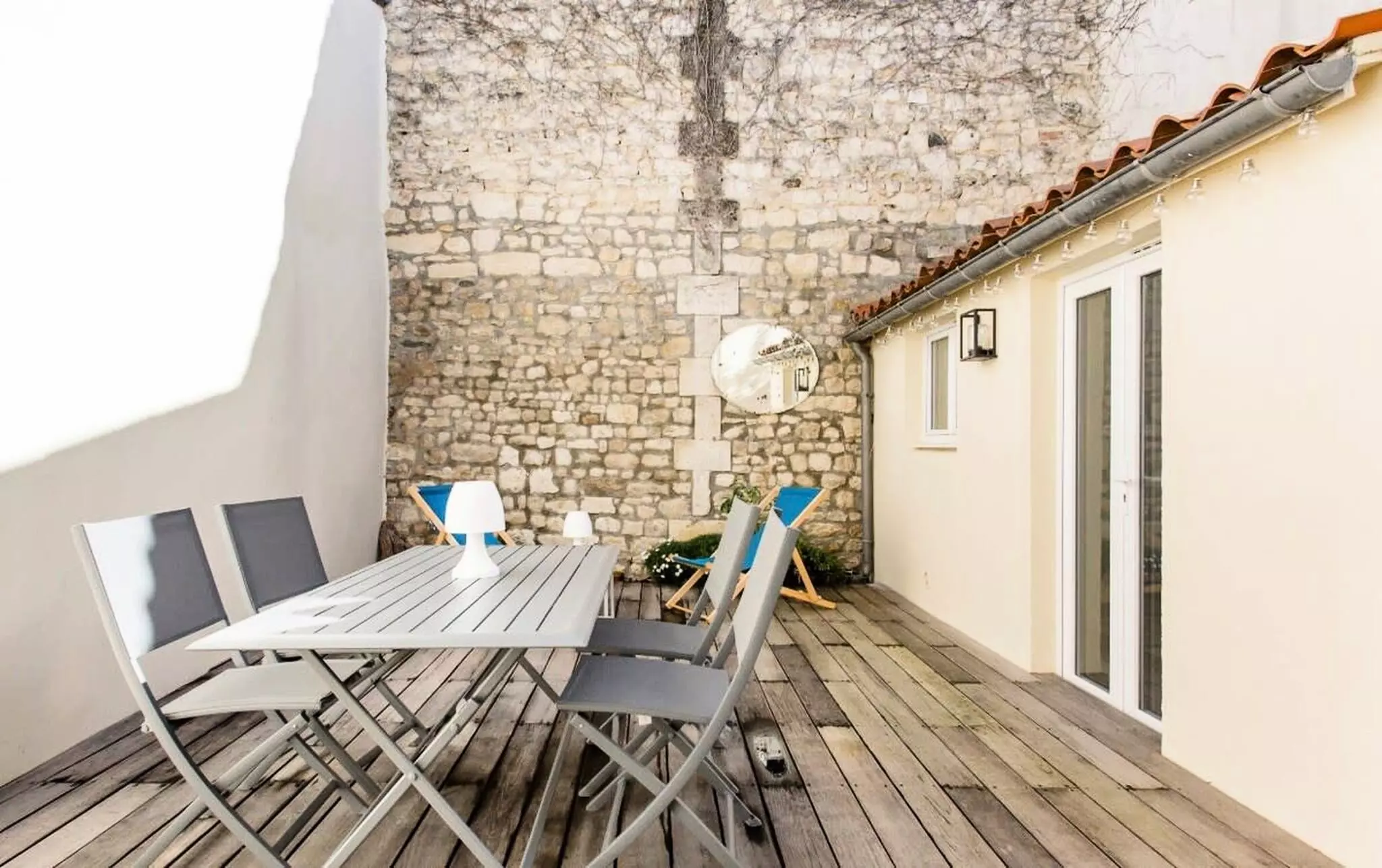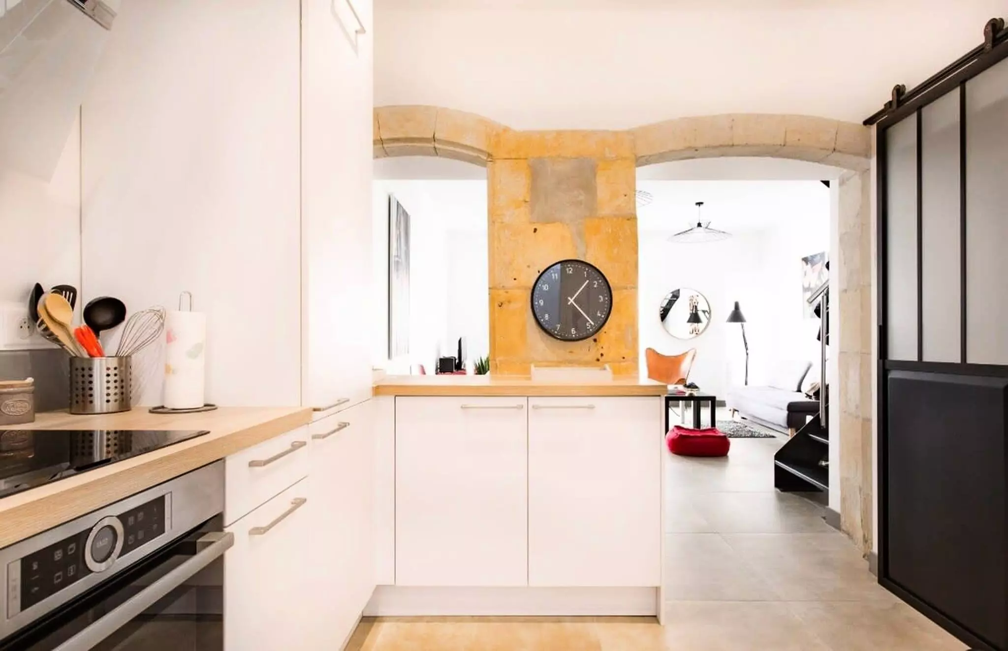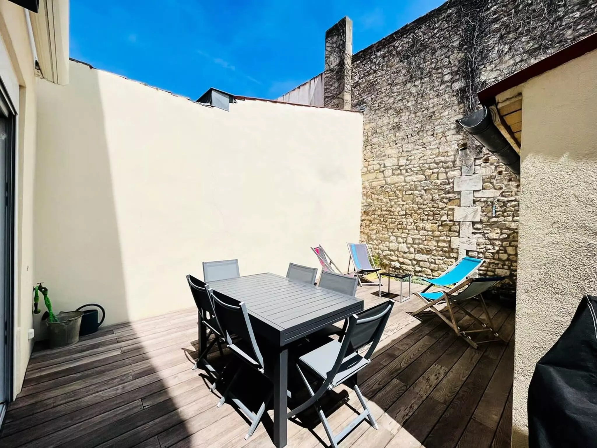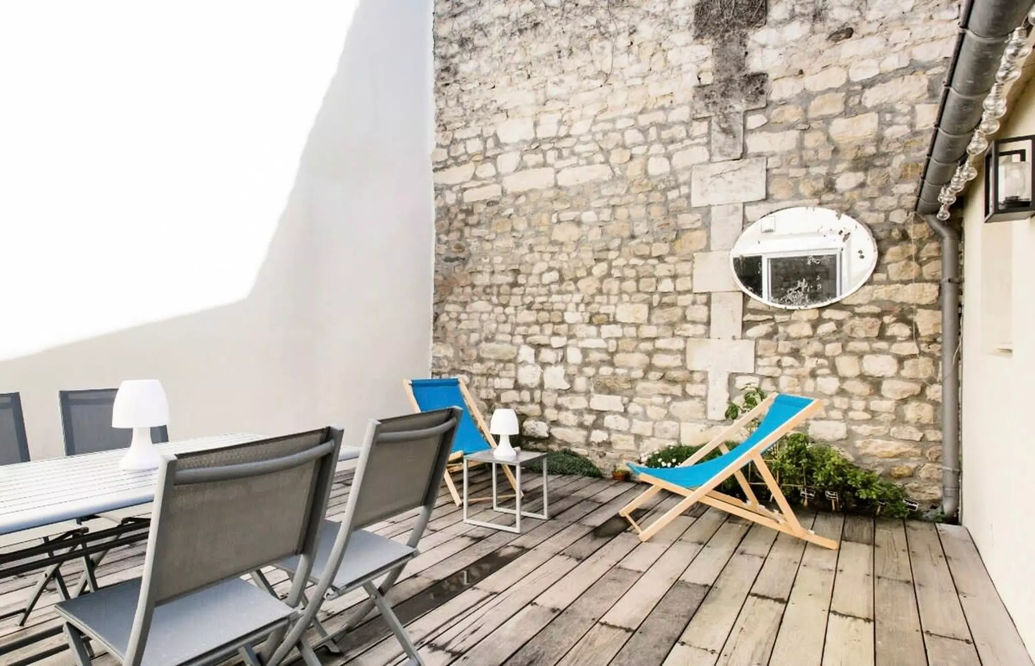 At the rear of the house, the wooden deck allows you to enjoy barbecues or relaxing in deck chairs without being disturbed by city noise. The complete renovation carried out in 2017 allows you to enjoy the charm of the old stone walls while enjoying modern comforts.