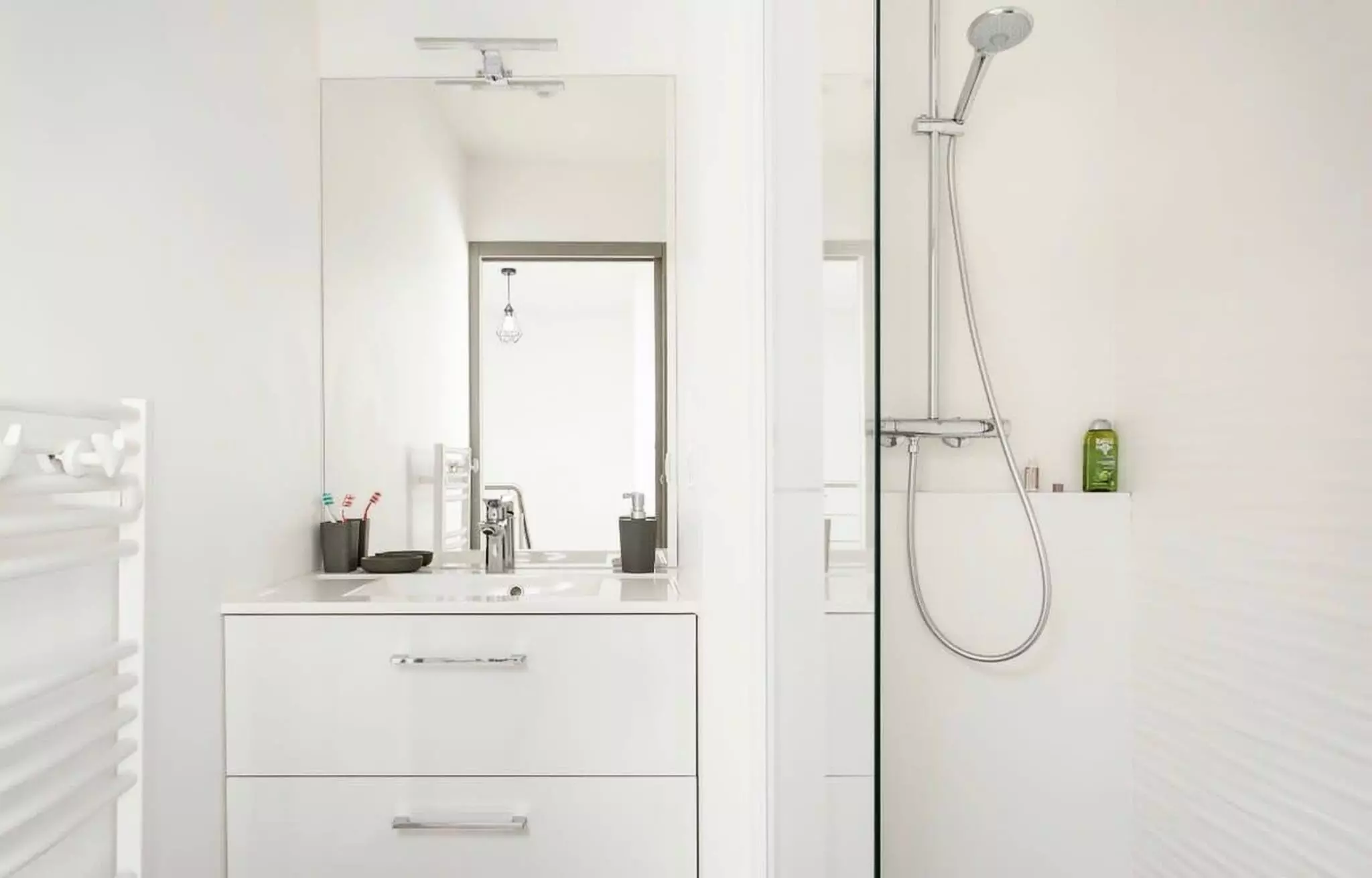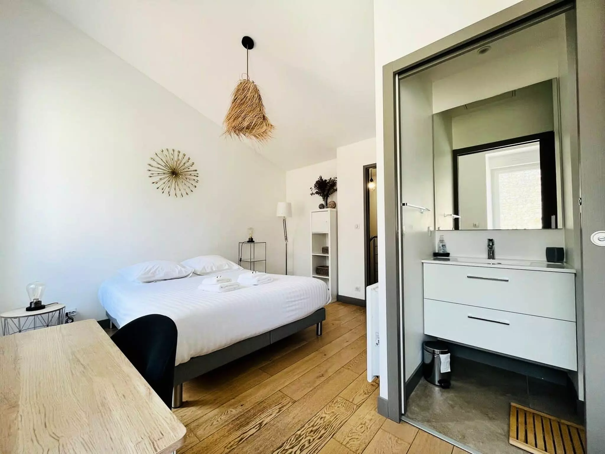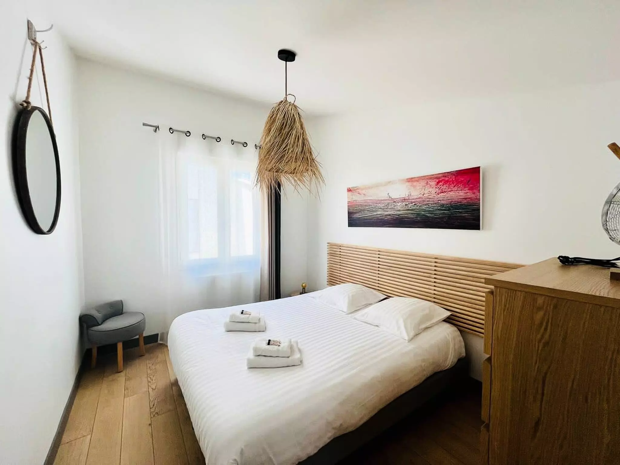 Ideal for a stay with family or friends, it can accommodate up to 4 people with its 2 bedrooms and 2 bathrooms (one separate with shower and one in the bedroom).